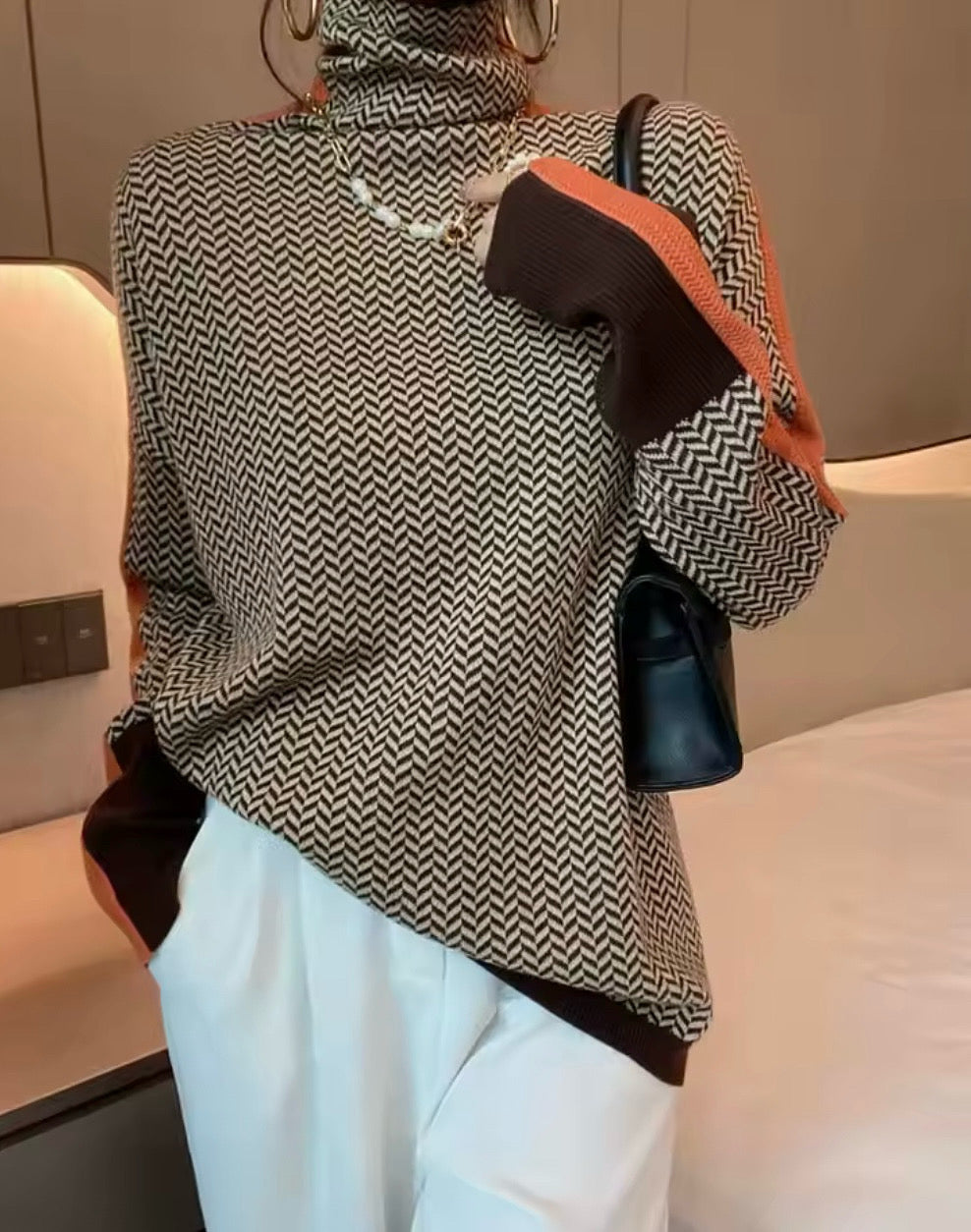 Rolka džemper Nara - braon krem riblja kost